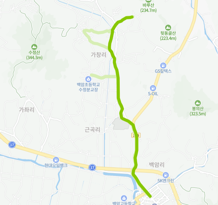 순서 정류장 지역 1 가곡마을회관 용인 2 가곡마을회관(경유) 용인 3 가창골 용인 4 내창4리 용인 5 내창 용인 6 신창 용인 7 기창1리마을회관 용인 8 윈팩 용인 9 제일약품앞 용인 10 백암중앙교회앞 용인 11 백암터미널 용인 ※ (경유)라고 되어 있는 부분은 정차하지 않습니다.