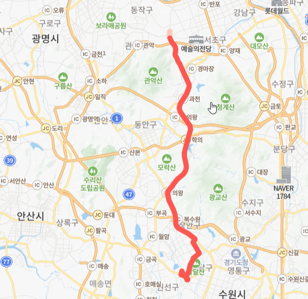 과천 서울 수원 의왕 7770번 버스 노선 지도