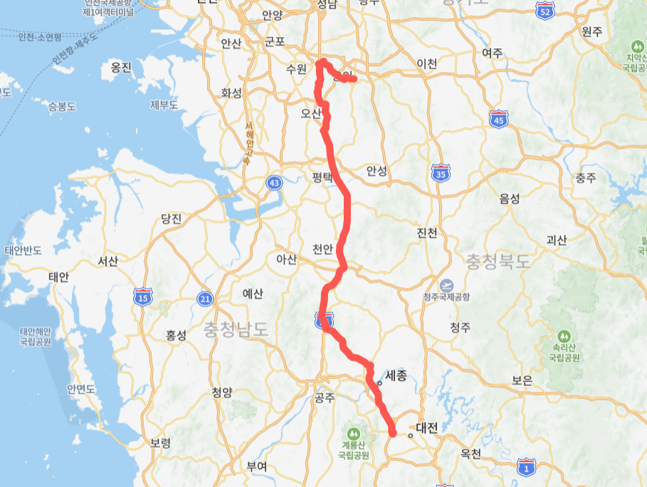 대전 연기 용인 화성 8326번 버스 노선 지도